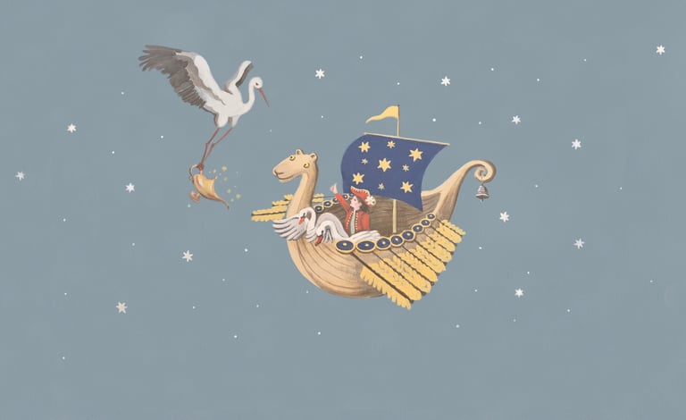 Let's go on a night journey on a Viking ship! There's still plenty of room on the ship for more friends, and with the magic lamp we can make many wishes come true!