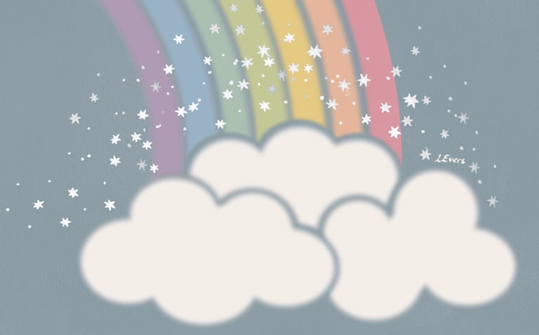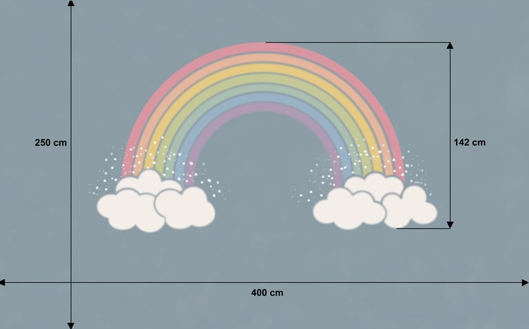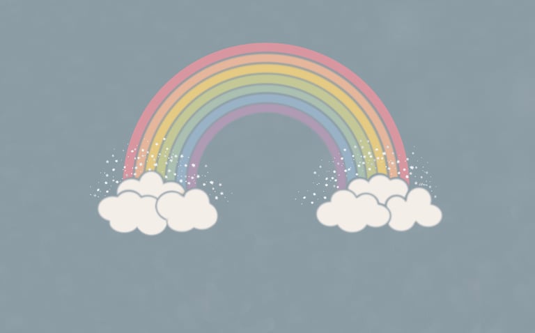 The bright pastel colors of the rainbow have slightly blurred contours, giving the scene softness and subtlety.