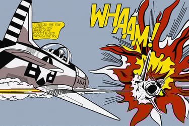 "What interests me is to paint the kind of antisensitivity that impregnates modern civilization. I think art since Cezanne has become extremely romantic and unrealistic, feeding on art. It is Utopian. It has less and less to do with the world. It looks inward - neo-Zen and all that. Pop Art looks out into the world. It doesn't look like a painting of something, it looks like the thing itself." Roy Lichtenstein