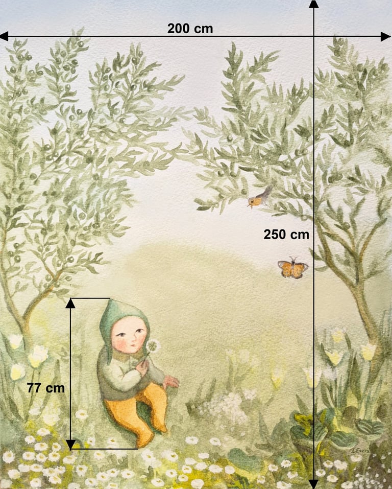 If you want the background color to be adjusted so it better complements the interior or furniture this can be done. Would you like to bring something personal into the painting? For example, the likeness of your child including their characteristic clothing? This can help on the journey into the realm of imagination... And I am very open to it! For this, I need several photos of the children from you. I will prepare a custom design for 100 euros (with a maximum of 2 changes) in advance and send it digital to you.